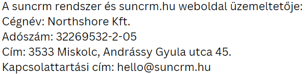 Az adatvédelmi tájékoztató rendszeresen frissülhet, és az esetleges módosításokról értesítjük Önt. Kérjük, rendszeresen ellenőrizze az oldalt a legfrissebb információkért. A szolgáltatásaink használatával Ön elfogadja az itt leírt adatkezelési gyakorlatokat és feltételeket. Amennyiben bármilyen kérdése vagy aggálya merül fel az adatvédelemmel kapcsolatban, kérjük, vegye fel velünk a kapcsolatot a [hello@suncrm.hu] e-mail címen.